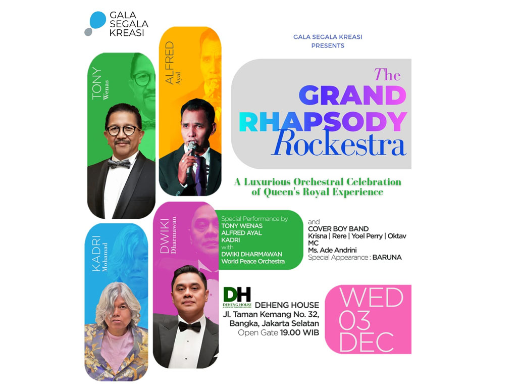 Jakarta - Kota Jakarta akan menjadi saksi sebuah pertunjukan musik yang luar biasa pada Rabu, 3 Desember 2025, saat The Grand Rhapsody Rockestra digelar di Deheng House, Kemang.