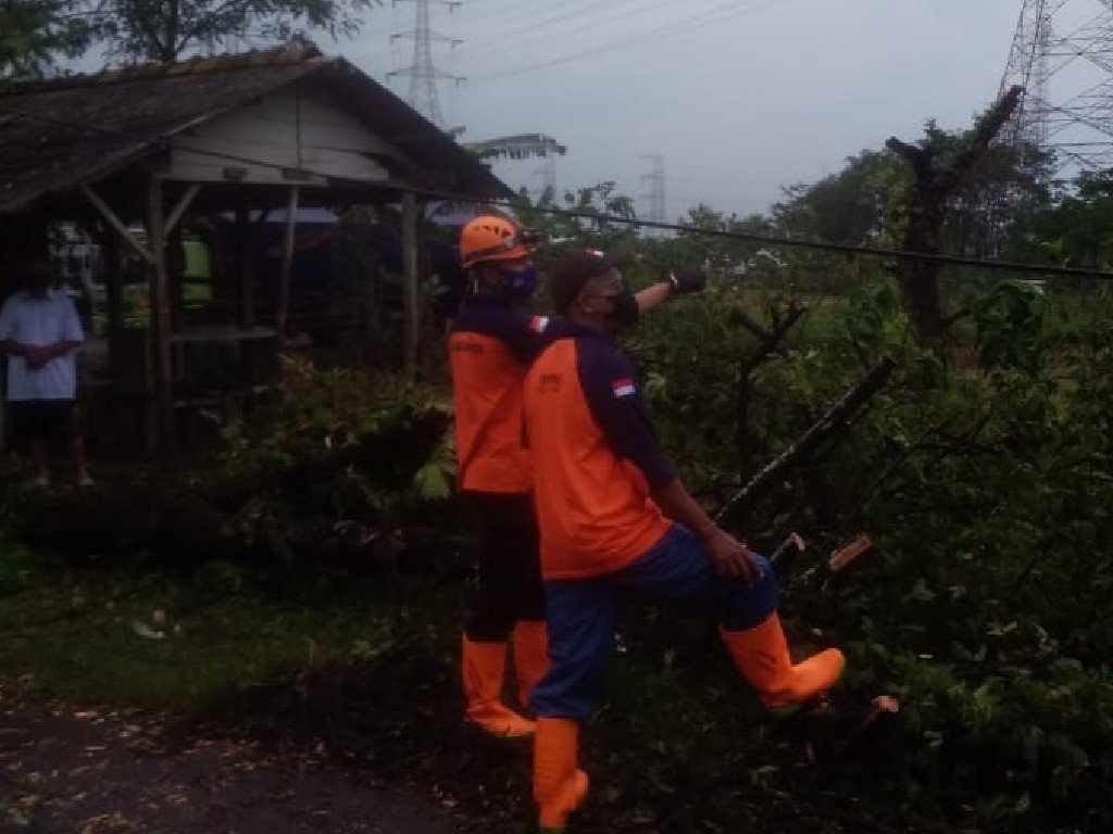 Penanganan darurat juga menyasar pada pembersihan pohon tumbang. Sejumlah pohon roboh di beberapa titik, baik di sekitar pekarangan rumah warga maupun di ruang publik. Petugas BPBD telah membersihkan ranting-ranting maupun pohon yang tumbang akibat angin kencang sore itu.