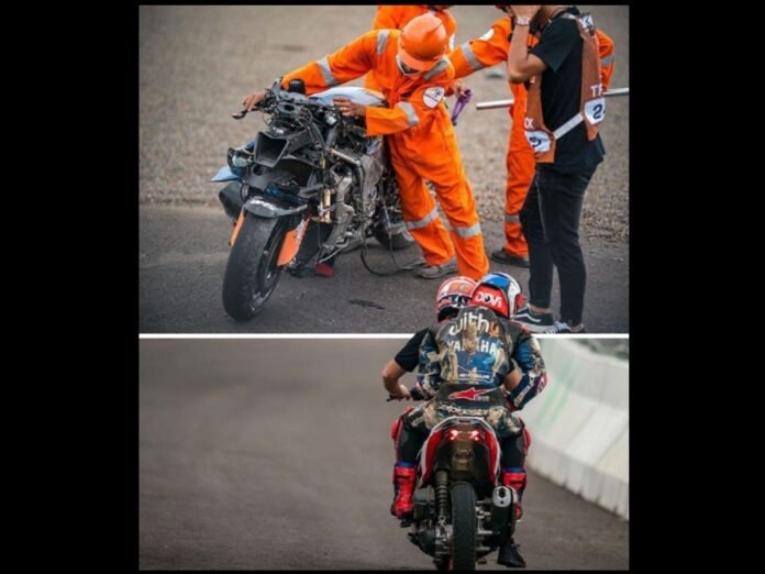 “Pembalap baik-baik saja meski pun dia berguling-guling di pasir yang membuat kepalanya terbentur,” sambung Sky Sport.
