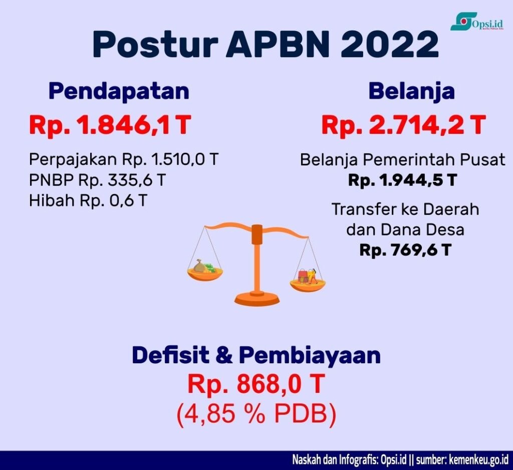 Jakarta – Penjabaran Anggaran Pendapatan dan Belanja Negara (APBN) RI Tahun 2022 terdapat pendapatan sebesar RP 1.846,1 triliun. Sementara di sisi bersamaan dana belanja mencapai Rp 2.714,2 triliun.