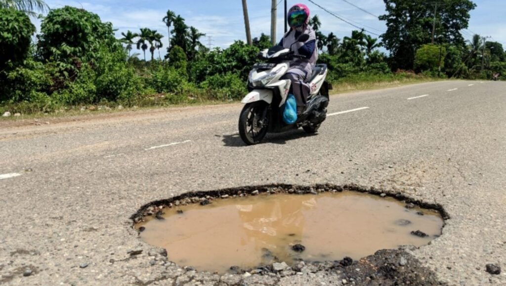 Aceh Barat Daya – Lubang jalan provinsi tepatnya di lintasan Desa Cot-Mane ke arah Kecamatan Blangpidie Kabupaten Aceh Barat Daya (Abdya), Provinsi Aceh kembali muncul dan bisa membahayakan pengendara.