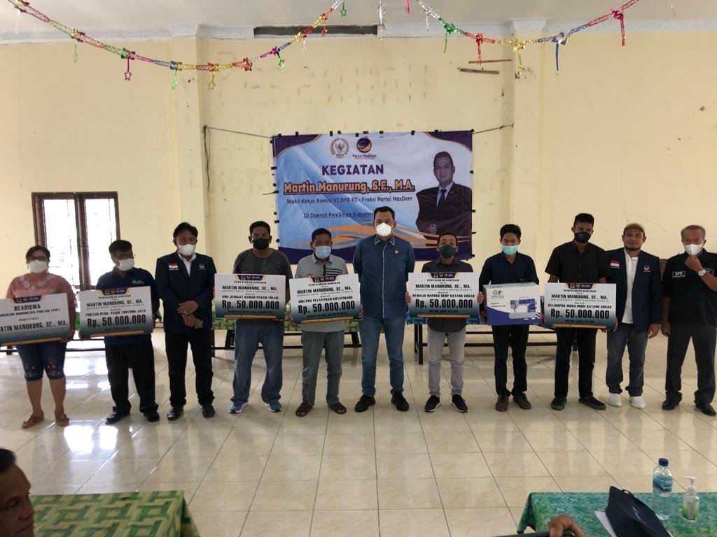 Labuhanbatu Selatan – Anggota Fraksi Partai NasDem DPR RI, Martin Manurung menyerahkan bantuan sebanyak Rp 300 juta kepada masyarakat di Kabupaten Labuhanbatu Selatan (Labusel), Minggu, 12 Desember 2021.