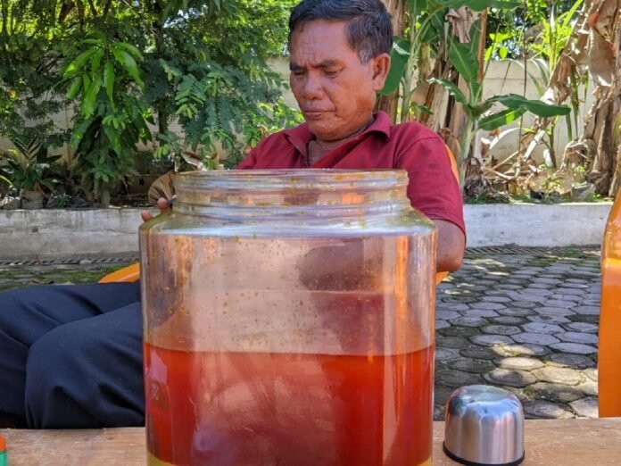 “Sore kemarin saya buat, pagi ini jadi. Belum sempurna memang, tinggal soal penyaringan saja ini. Tinggal saya rancang alat sederhana dan murah, agar minyak makan bisa diproduksi dalam skala rumahan, UKM skala desa, dan sebagainya. Plus saya hitung keekonomiannya, agar usaha semacam ini bisa untung,” ujarnya.