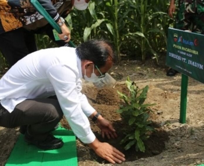 Lahan yang ditanami seluas 10 hektar, terdiri dari 4.000 bibit tanaman Macadamia Nuts dan 1.000 bibit tanaman Mahoni.
