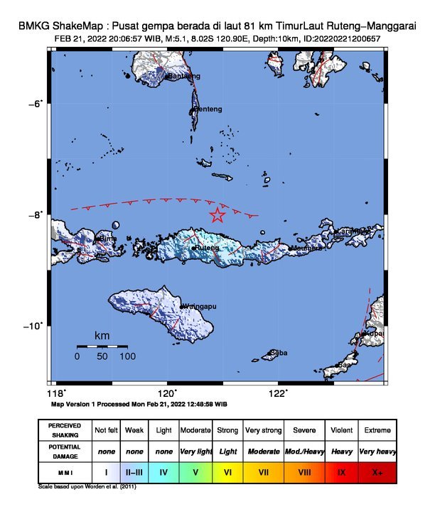 Sebelumnya BMKG menyebutkan telah terjadi gempa berkekuatan magnitudo 5.8 yang mengguncang Kabupaten Manggarai pada Senin 21 Februari 2022.