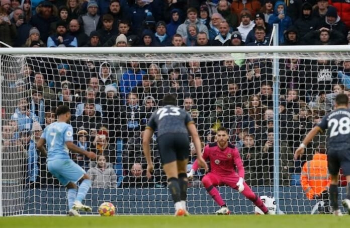Manchester – Gol tunggal yang dicetak pemain sayap Manchester City, Raheem Sterling melalui titik putih membawa timnya mengalahkan 10 pemain Wolverhampton Wanderers dalam lanjutan Liga Utama Inggris, Sabtu malam, 11 Desember 2021.
