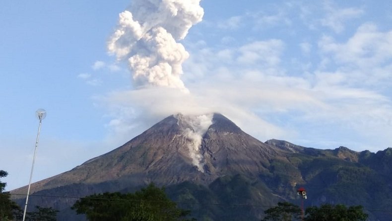 Yogyakarta – Salah satu gunung berapi yang masih aktif di Indonesia, Gunung Merapi, dilaporkan mengeluarkan awan panas guguran sejauh 2.5 km ke arah barat daya.