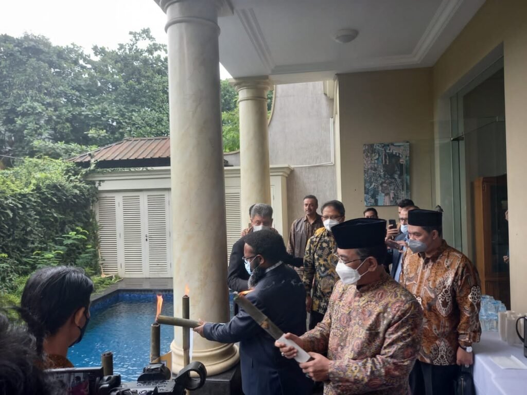 Ketiganya menyalakan obor perdamaian di Kantor Kedutaan Besar Palestina di Jakarta, Senin, 10 Januari 2022.