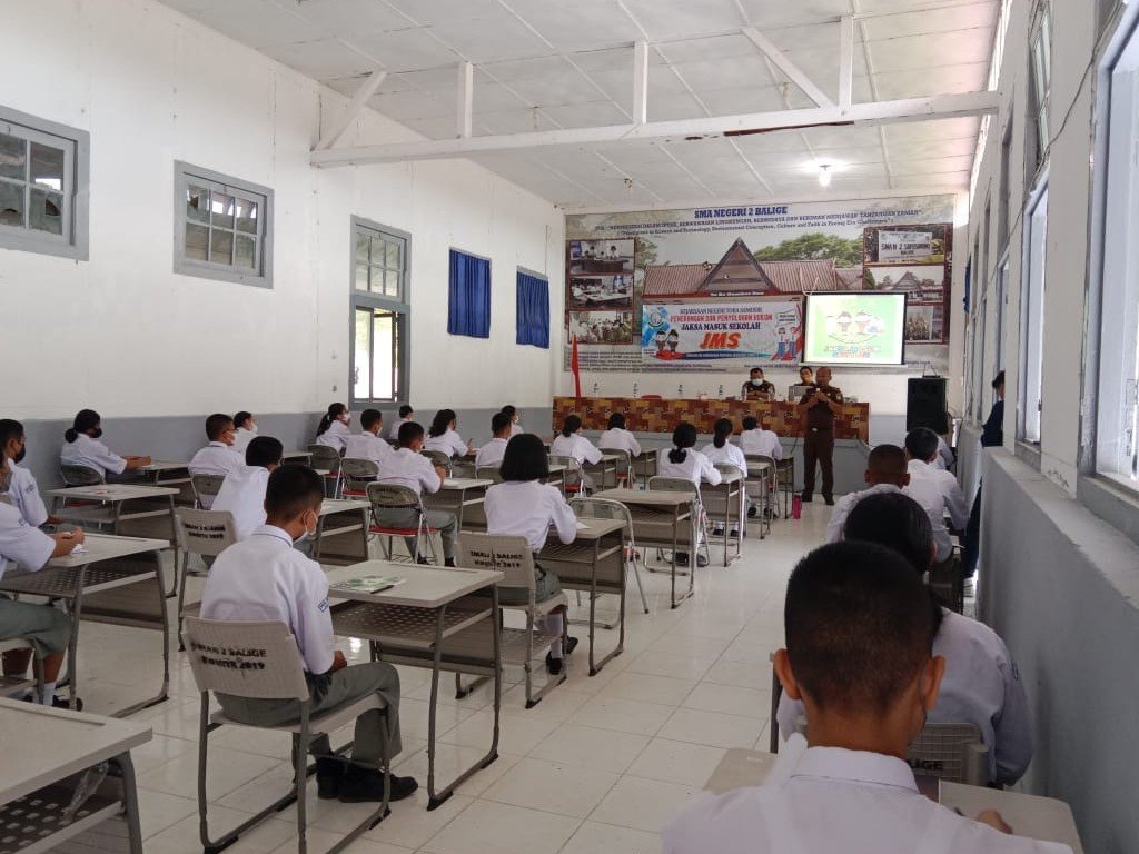 Toba – Sedikitnya 60 orang siswa-siswi SMA Negeri 2 Balige mengikuti sosialisasi hukum yang diberikan oleh jaksa dari Kejaksaan Negeri Toba Samosir, Sumatra Utara, melalui kegiatan Jaksa Masuk Sekolah pada Kamis, 17 Februari 2022.