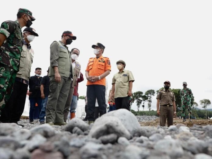 Lumajang – Kepala Badan Nasional Penanggulangan Bencana (BNPB) Letjen TNI Suharyanto kembali meninjau progres pembangunan hunian tetap dan hunian sementara bagi masyarakat terdampak Awan Panas Guguran (APG) Gunungapi Semeru di Desa Sumbermujur, Kecamatan Candipuro, Kabupaten Lumajang, Jawa Timur, Selasa, 15 Februari 2022.
