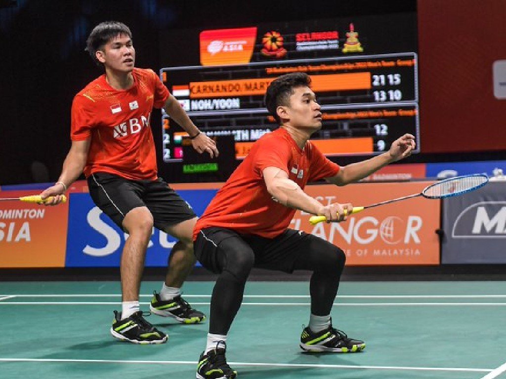 Selangor – Semifinal Kejuaraan Bulutangkis Asia Beregu 2022, ganda putra Indonesia Leo Rolly Carnando/Daniel Marthin sukses menekuk ganda Singapura Wesley Koh Eng Keat/Andy Kwek Jun Liang.