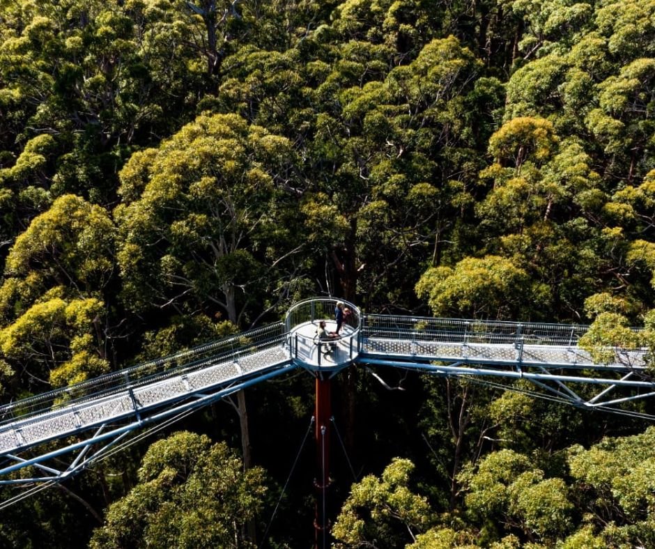 Terletak di kawasan hutan kuno, jalur pejalan kaki gantung ini membawa pengunjung berjalan hingga 40 meter di atas tanah, melintasi kanopi pohon tingle raksasa.