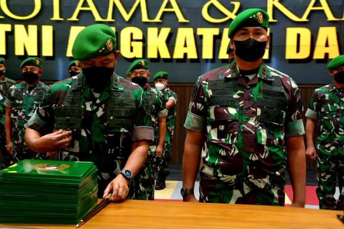 Bandung – Mayor Jenderal (Mayjen) TNI Kunto Arief Wibowo resmi menjabat Panglima Daerah Militer (Pangdam) III/Siliwangi, setelah melaksanakan serah terima jabatan (sertijab) yang dipimpin Kepala Staf Angkatan Darat (Kasad) Jenderal TNI Dudung Abdurachman di lantai 3 Gedung Nasution Mabes TNI AD Jakarta, Senin 31 Januari 2022.