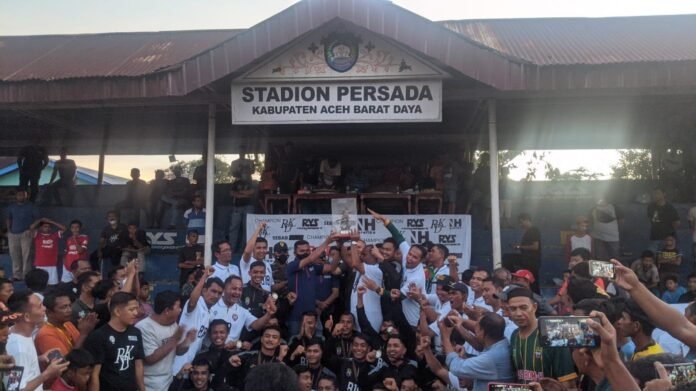Aceh Barat Daya – Final tunamen Barsela Cup l di lapangan Persada Blangpidie Kabupaten Aceh Barat Daya (Abdya), Provinsi Aceh, antara dua tim asal Kecamatan Blangpidie, yakni Bom-H vs Ras menyuguhkan permainan tensi tinggi.