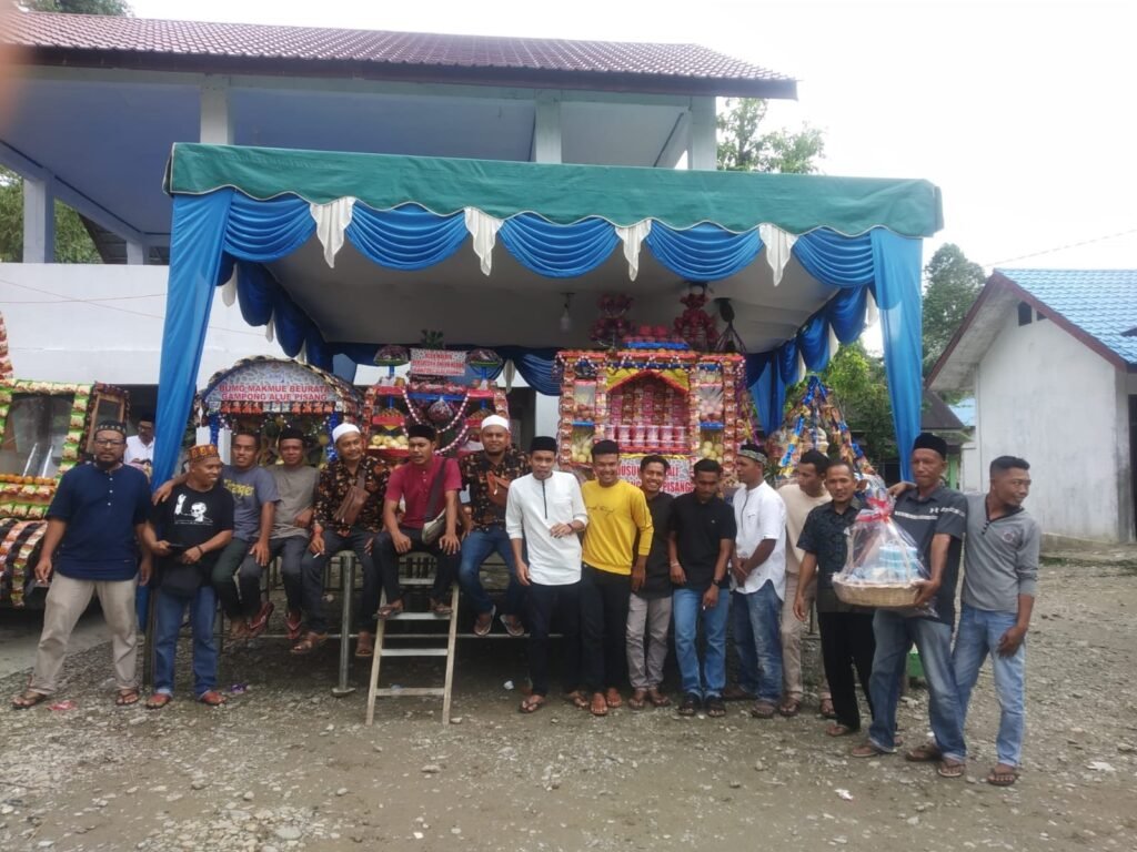 Aceh Barat Daya – Pemuda Desa Alue Pisang, Kecamatan Kuala Batee, Kabupaten Aceh Barat Daya (Abdya), Provinsi Aceh, bergotong royong ikut andil dalam memeriahkan maulid nabi Muhammad SAW di masjid desa itu.