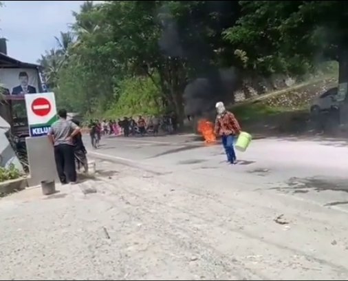 Dalam unggahannya itu, Muh Jaimuddin mempertontonkan sebuah sepeda motor yang terbakar beserta pengendaranya di atas bahu jalan.