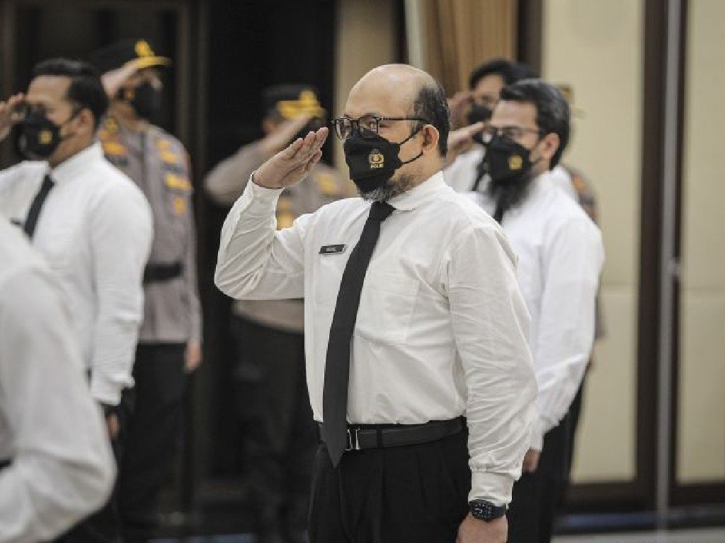 Jakarta – Mantan penyidik Komisi Pemberantasan Koruspi (KPK) Novel Baswedan bersama 43 rekannya mengikuti upacara pengangkatan dan pengambilan sumpah sebagai Aparatur Sipil Negara (ASN) Korps Bhayangkara, di Mabes Polri, Jakarta Selatan, Kamis, 9 Desember 2021 pukul 15.47 WIB.