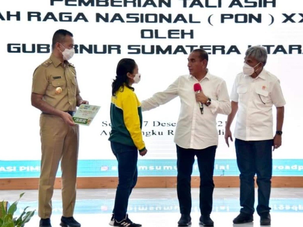 Bonus tersebut diserahkan langsung oleh Gubernur Edy Rahmayadi di Aula Tengku Rizal Nurdin, Jalan Jenderal Sudirman Medan, Senin, 27 Desember 2021, disaksikan Wakil Gubernur Musa Rajekshah dan Ketua KONI, John Ismadi Lubis.
