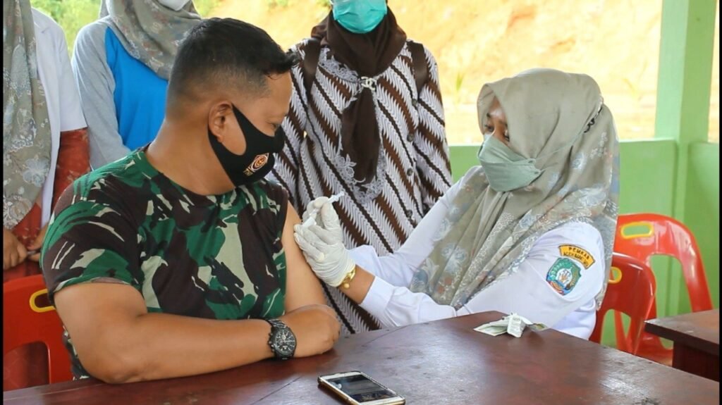 Aceh Barat Daya – Ratusan personel TNI di lingkungan Kodim 0110/Aceh Barat Daya (Abdya) menjalani program pemerintah soal penyuntikan vaksin penguat dosis ketiga atau vaksin booster di halaman Makodim setempat, Kamis, 10 Februari 2022.