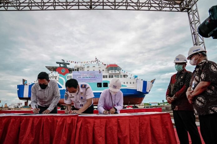 Makassar – Pelaksana Tugas (Plt) Gubernur Sulawesi Selatan, Andi Sudirman Sulaiman bersama Sekretaris Direktur (Sesditjen) Jenderal Perhubungan Darat Kementerian Perhubungan RI, Marta Hadisarwono, melaunching Kapal Penyebrangan Penumpang Roro 500 GT Lintas Kaledupa – Tomia – Binongko (Wakatobi), di Makassar, Rabu 1 Desember 2021.