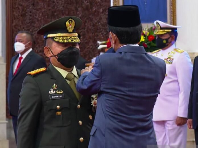 Jakarta – Presiden RI Joko Widodo (Jokowi) melantik Letnan Jenderal TNI Dudung Abdurachman sebagai Kepala Staf Angkatan Darat (KSAD) di Istana Negara, Jakarta, Rabu, 17 November 2021.