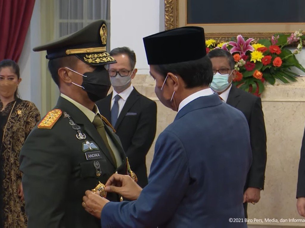 Jakarta – Presiden Joko Widodo atau Jokowi resmi melantik Jenderal Andika Perkasa sebagai Panglima TNI di Istana Kepresidenan Jakarta, Rabu, 17 November 2021.