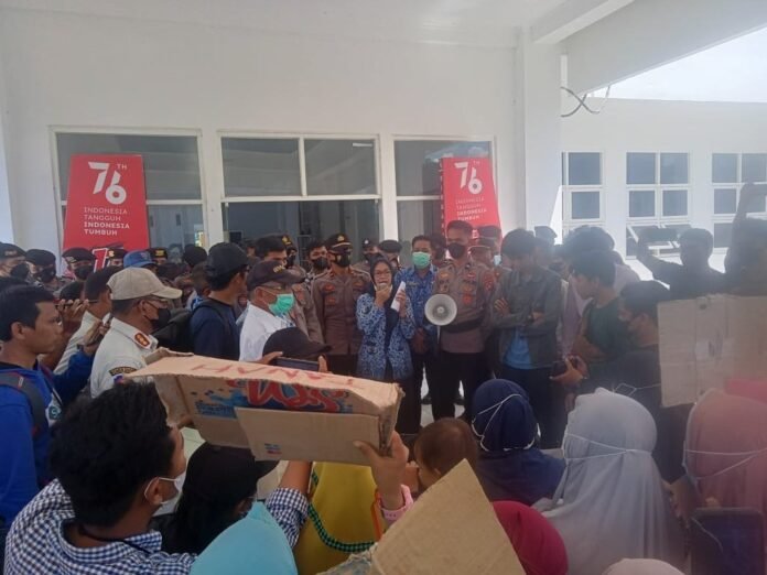 Sulawesi Barat – Puluhan warga di area Stadion Manakarra, Kelurahan Binanga, Kecamatan Mamuju, Kabupaten Mamuju, Sulawesi Barat (Sulbar), geruduk kantor Bupati Mamuju.