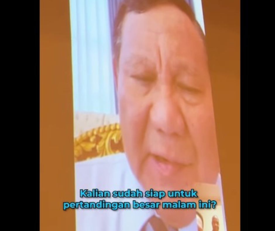 "Kalian sudah siap untuk pertandingan besar malam ini? Berikan yang terbaik," kata Prabowo.
