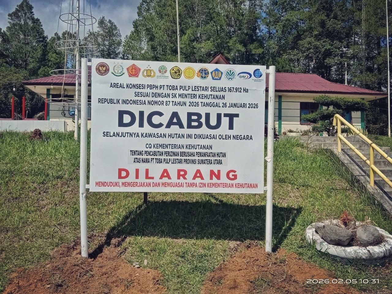 Sebelumnya, pemerintah resmi mencabut izin Perizinan Berusaha Pemanfaatan Hutan (PBPH) PT TPL seluas 167.912 hektare per Januari 2026.