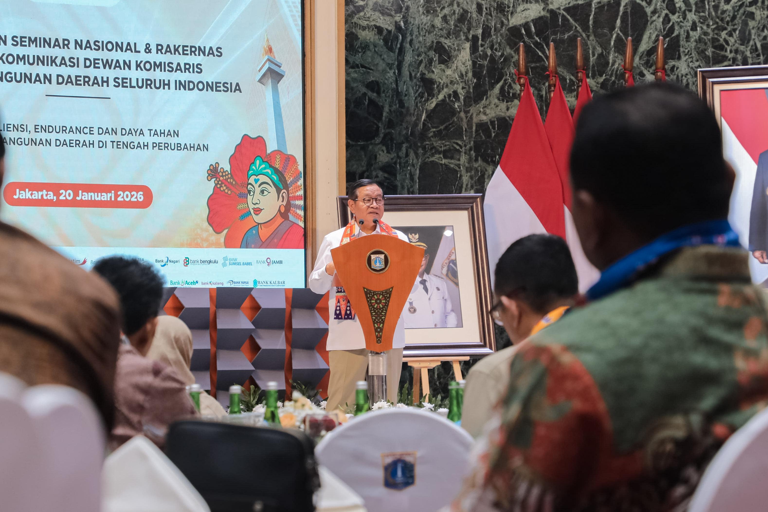 Gubernur Pramono mengharapkan Seminar Nasional dan Rakernas FKDK BPDSI menjadi momentum strategis untuk menegaskan kembali peran Dewan Komisaris sebagai penjaga arah, ketahanan, dan kesinambungan bank daerah di tengah dinamika perubahan ekonomi, regulasi, dan teknologi.