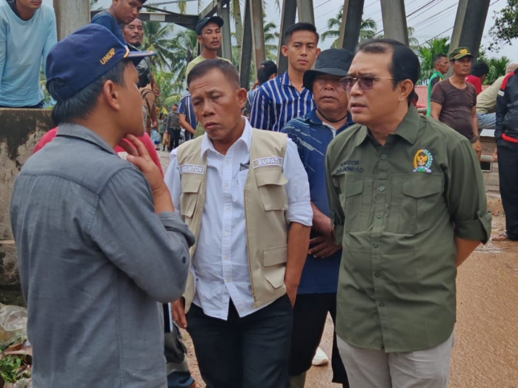 Tapanuli Tengah - Anggota DPD RI asal Sumatra Utara, Pdt. Penrad Siagian, turun langsung meninjau sejumlah lokasi bencana banjir dan longsor di Humbang Hasundutan, Tapanuli Tengah, hingga Kota Sibolga.