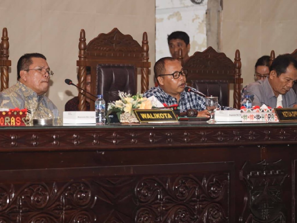 Pematangsiantar - Wali Kota Pematangsiantar Wesly Silalahi SH MKn menyampaikan Nota Jawaban atas Pemandangan Umum Fraksi-fraksi DPRD Kota Pematangsiantar terhadap Nota Keuangan Rancangan Anggaran Pendapatan dan Belanja Daerah (R-APBD) Kota Pematangsiantar Tahun Anggaran (TA 2026. Nota Jawaban disampaikan dalam Rapat Paripurna di Gedung Harungguan DPRD Kota Pematangsiantar, Kamis (20/11/2025) malam.
