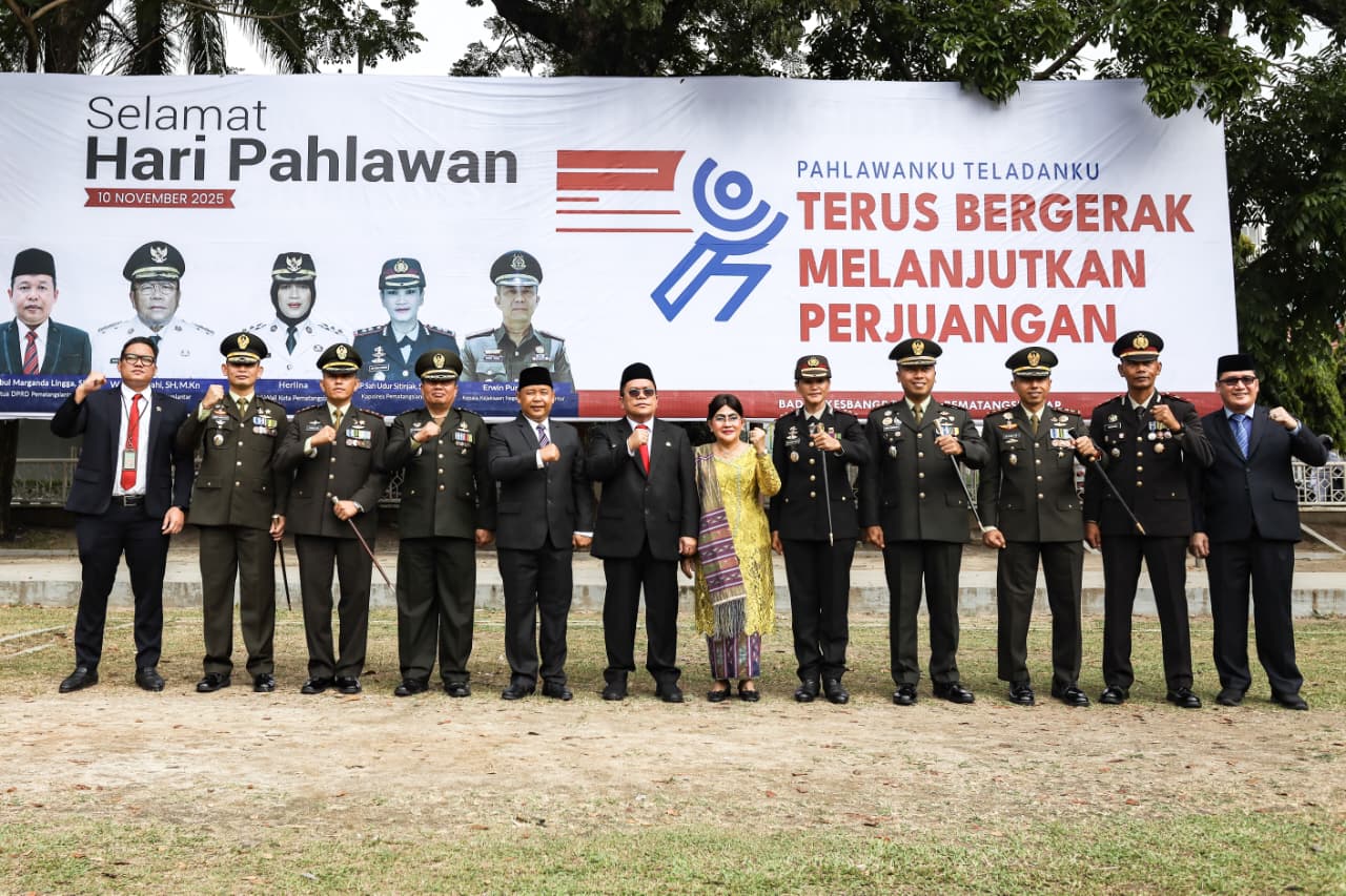 Wali Kota Pematangsiantar Wesly Silalahi SH MKn bersama pejabat lainnya selesai Upacara Peringatan Hari Pahlawan, di Lapangan Adam Malik Pematangsiantar, Senin (10/11/2025) pagi. (Foto: Kominfo Pematangsiantar)
