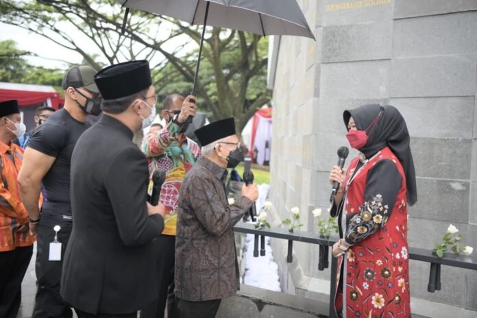 Bandung – Wakil Presiden (Wapres) RI K.H Ma`ruf Amin didampingi Gubernur Jabar Ridwan Kamil meresmikan Monumen Pahlawan Covid-19 Jawa Barat di Jalan Japati, Kota Bandung, Sabtu 4 Desember 2021.