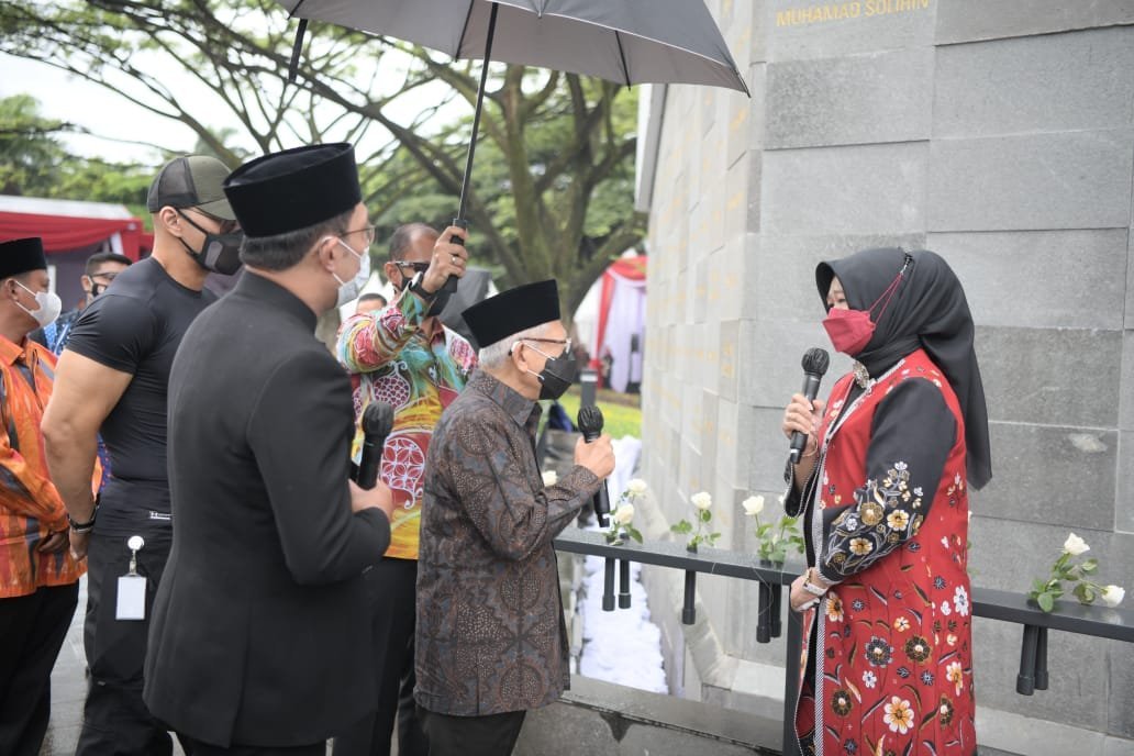 “Dengan mengucap bismillahirrahmanirrahim, Monumen Pahlawan Covid-19 Jawa Barat saya resmikan. Semoga Allah SWT memberikan inayah-nya dan meridai setiap ikhtiar yang kita lakukan,” kata Wapres.