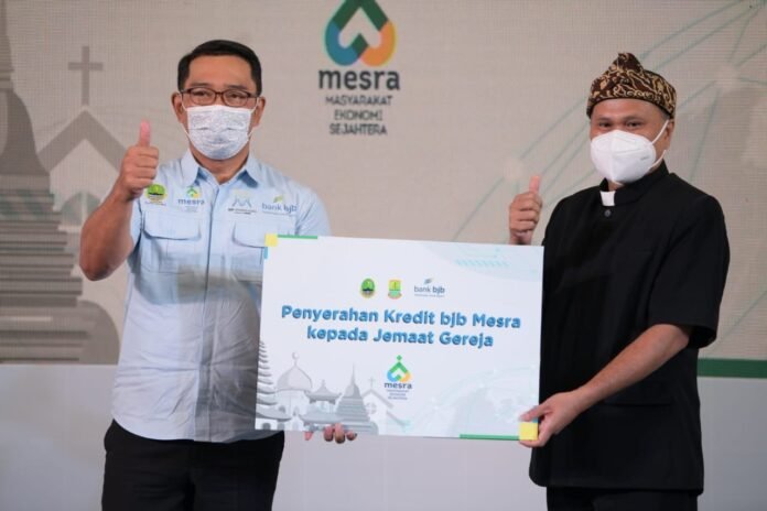 Karawang – Gubernur Jawa Barat (Jabar) Ridwan Kamil menyalurkan Kredit Mesra (Masyarakat Ekonomi Sejahtera) kepada jemaah gereja menjelang Natal. Penyaluran itu berlangsung dalam acara Keberagaman di Era Globalisasi untuk Mewujudkan Jabar Juara Lahir Batin di Area Gereja Immanuel, Kabupaten Karawang, Jumat 24 Desember 2021.