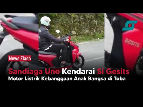 Nah, saat berkendara Menteri Sandiaga menunggangi motor listrik kebanggaan anak bangsa Si Gesits.