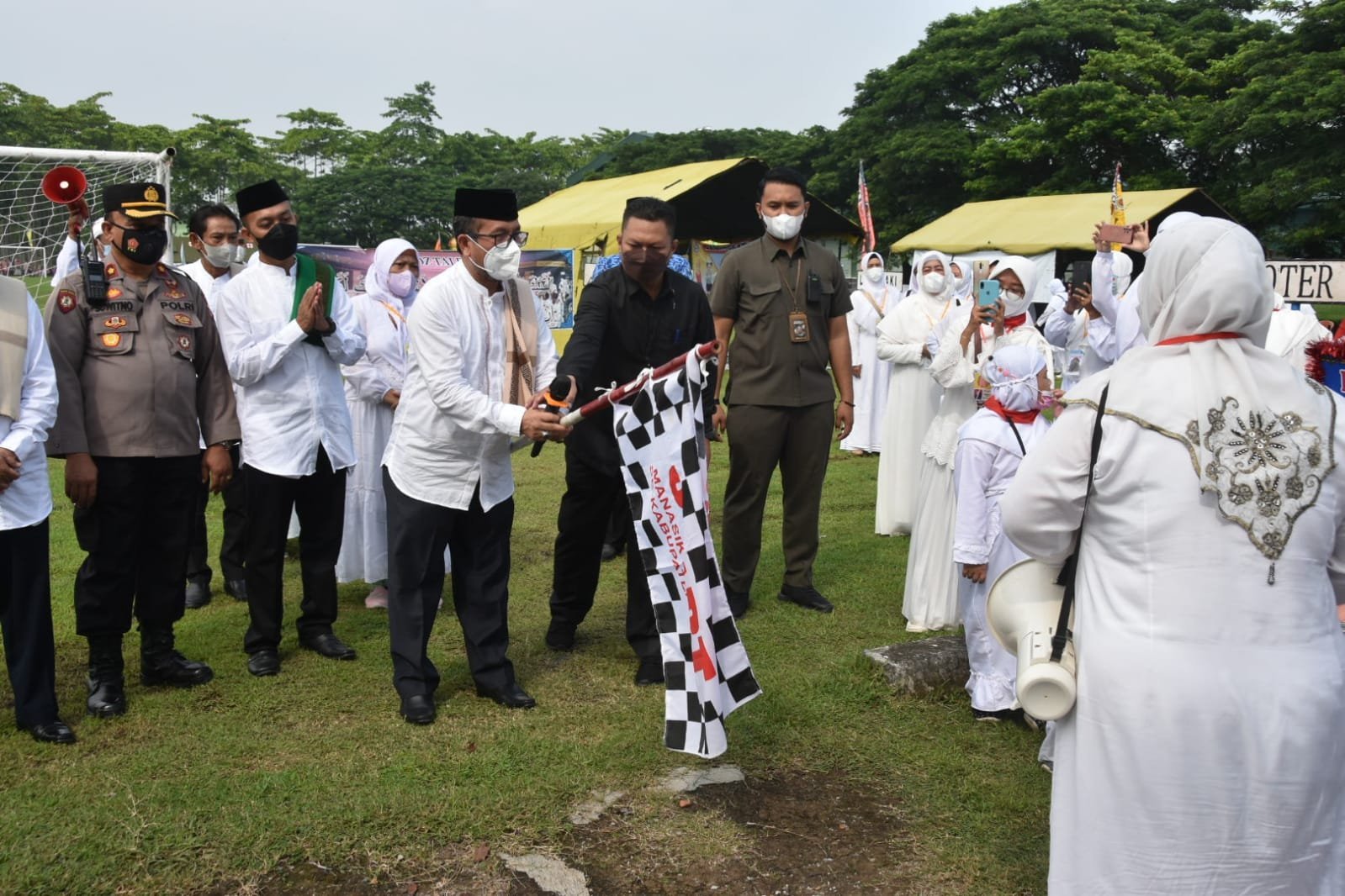 Cirebon – Ribuan siswa Taman Kanak-kanak (TK) di Kabupaten Cirebon, mengikuti kegiatan praktik manasik haji, bertempat di Lapangan Arhanud Pilang Kabupaten Cirebon, Senin 17 Januari 2022.
