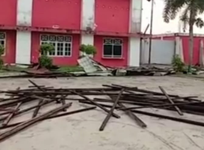 Medan – Stadion Mutiara Kisaran di Kabupaten Asahan, Sumatra Utara, dihantam angin puting beliung pada Selasa 22 Februari 2022 sore.