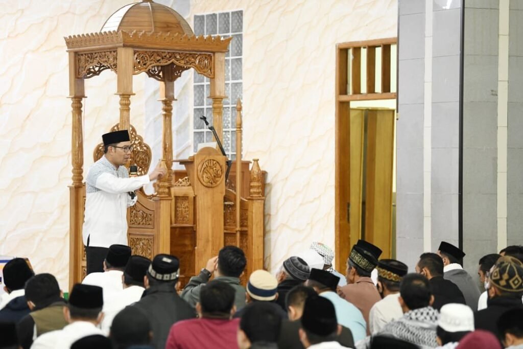 Garut – Gubernur Jawa Barat Ridwan Kamil melaksanakan Subuh Berjamaah Keliling di Masjid Agung Garut, Minggu 23 Januari 2022.