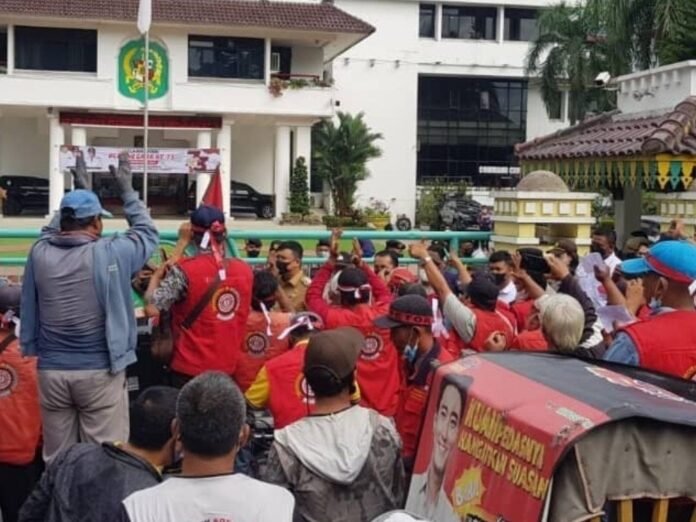 Medan – Puluhan penarik becak bermotor (betor), mendatangi kantor menantu Presiden Joko Widodo (Jokowi) di Balai Kota Medan, Senin, 20 Desember 2021.