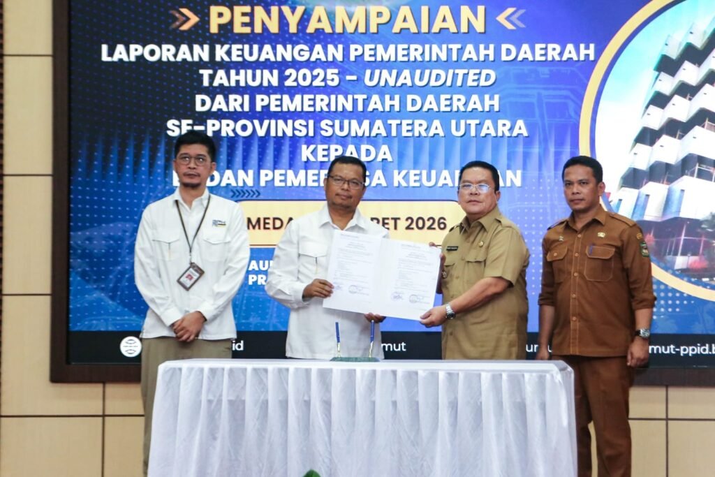 Pematangsiantar – Wali Kota Pematangsiantar Wesly Silalahi ditemani Sekda Junaedi Antonius Sitanggang menyerahkan Laporan Keuangan Pemerintah Daerah (LKPD) Unaudited Tahun Anggaran (TA) 2025 ke Badan Pemeriksa Keuangan (BPK) RI Perwakilan Sumatera Utara.